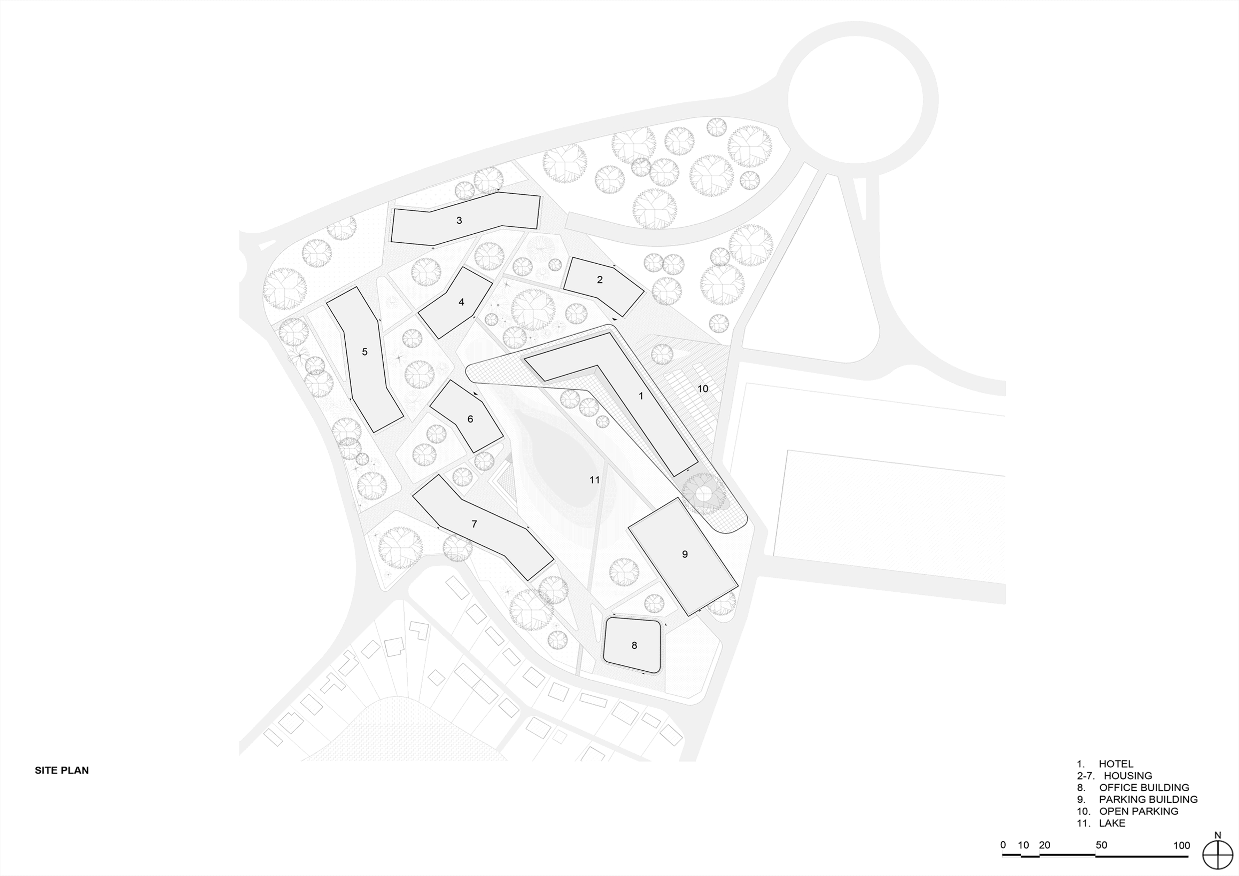 Description: Master plan – residential, hotel, office building and garage